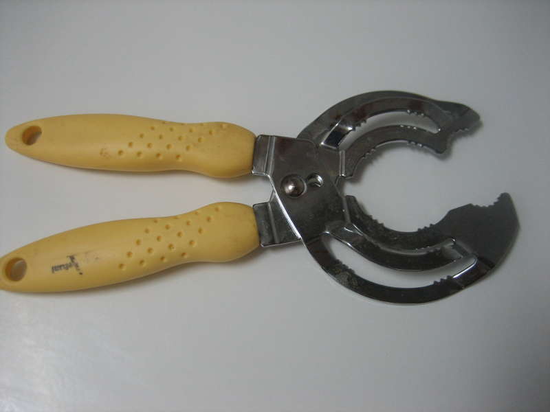 Hay un utensilio para este menester, y es el abre-botes, que tiene para varias medidas de tapas. Para ello se coloca el abre-botes, de la medida correspondiente, alrededor de la tapa y solo hay que girar sujetando con una mano, y haciendo prensión, el mango y con la otra mano el bote, girando el aparato en el sentido de las agujas del reloj mientras mantenemos el bote quieto.
