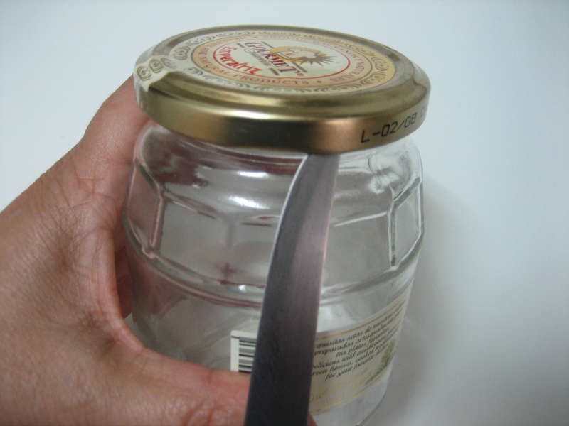 También podemos utilizar un cuchillo, o algo similar, e introduciremos la punta entre el bote y la tapa, haciendo una ligera palanca hacia arriba, esto hace que entre un poco de aire y se pueda abrir con facilidad. Id con cuidado porque el cuchillo se puede romper si no es muy flexible.
