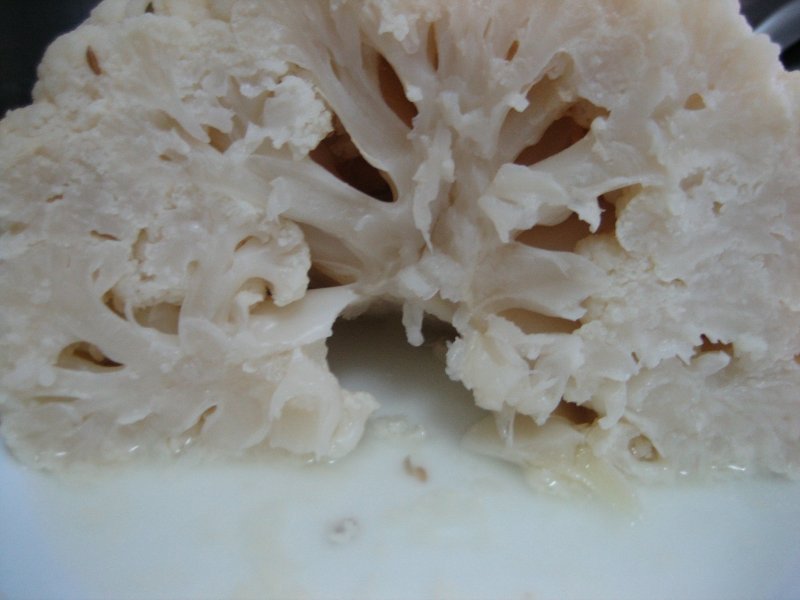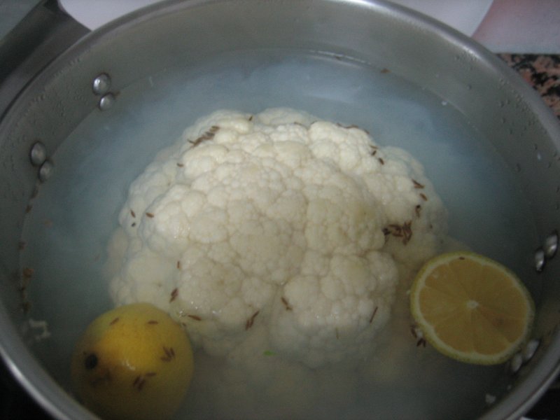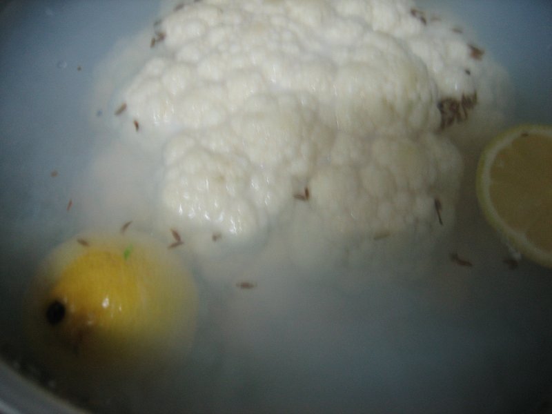 Coliflor sin olores Hay muchas formas de cocer una coliflor para que no desprenda ese desagradable olor (para muchas personas realmente si lo es, a mi personalmente me gusta tanto la coliflor que no me importa mucho y puedo soportarlo), y esta es una de ellas. Si conocéis más formas y queréis compartirla, no dudéis en dejarlo en los comentarios, así aprendemos más sobre este tema. La coliflor la he cocido esta vez entera, sobre todo para que se observen mejor los pasos, pero podemos cocerla separando los ramilletes que la componen y seguir los mismos pasos. 1.- Ponemos la coliflor en una olla y la cubrimos de agua, en ella pondremos un limón partido por la mitad para que al cocer no desprenda ese olor tan característico. Además añadimos un chorro de leche para que quede más blanquita y unos cominos que son muy buenos por sus cualidades digestivas.