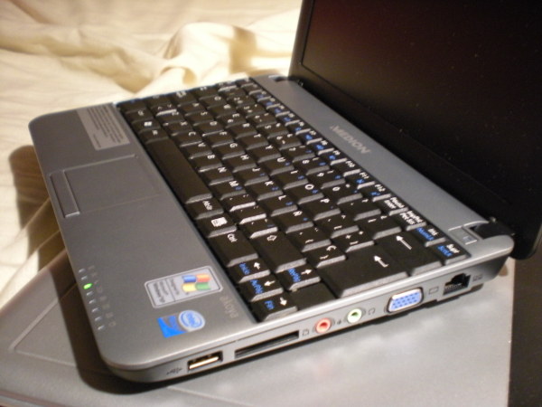 Analizaremos el ultraportátil Medion Akoya mini que ha salido hoy a la venta por un precio de 399 euros. El término ultraportátil se suele usar para ordenadores portátiles de aproximadamente 1 Kg de peso. Este en concreto pesa 1.2 Kg con la batería incluida. La pantalla tiene un tamaño de 10» y una resolución de 1024×600 por lo que la mayoría de webs se ven perfectas. Este tamaño permite que el teclado sea lo suficientemente ancho para que la escritura sea relativamente cómoda y la vista no se canse en exceso. Ideal para llevarlo de viaje porque tiene wifi.