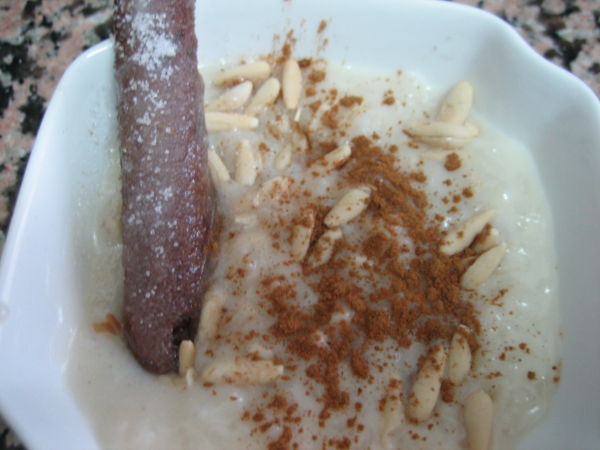 Arroz con leche de almendras y piñones