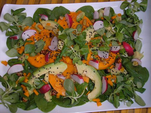 Calabaza marinada en ensalada verde