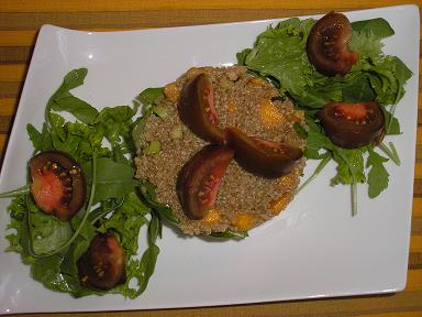 Quinoa con rúcula y melocotón