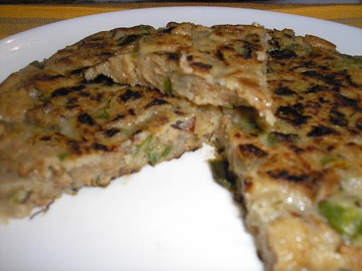 Tortilla de seitán, pimiento y cebolla