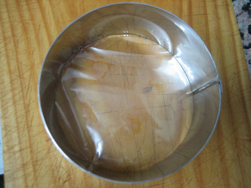 A continuación colocamos uno de los discos de plástico en la encimera, encima el aro.