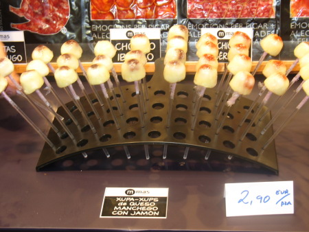 La charcutería tradicional tiene una amplia presencia en el salón, aunque deja destellos de creatividad como en estos Chupa chups de queso de la Charcutería Mas. Su aspecto es sorprendente, a buen seguro hara las delicias de los quesos, unos grandes afortunados por su amplia oferta.