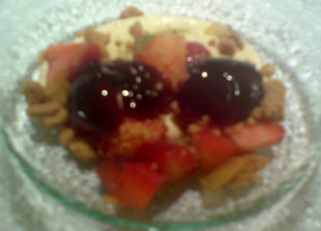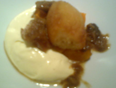 La guarnición no me convenció, era una gelatina caliente de manzana. Demasiadas gelatinas durante el menú.
