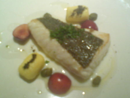 El pescado no defraudó, nuevamente bordaron la cocción y manipulación del mismo ( lo presentaron cocido en baja temperatura y mínimamente marcado, sólo por el lomo). La ración fue generosa, sobre 110 gr. ( sé que las comparaciones son odiosas, pero en Racó d´en Freixa ésta no llegó ni a 60 gr, y pagué en 2003, 130 €).