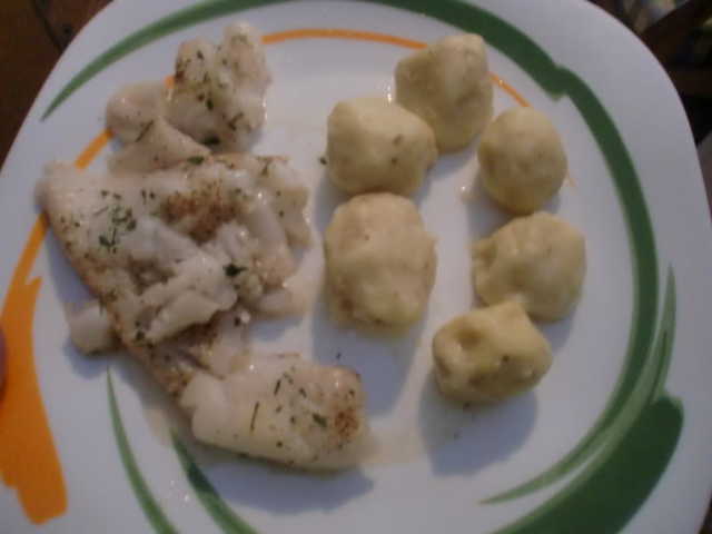 Filete de pescado con ñoquis de patata y mozarella