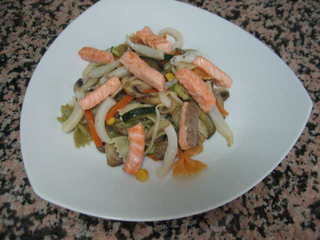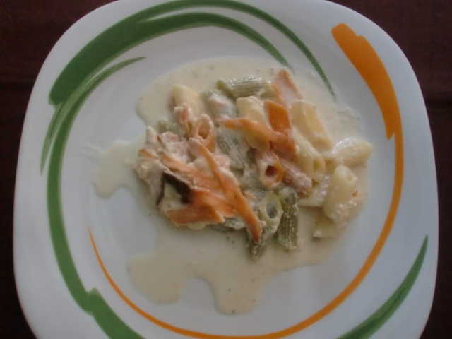 Macarrones con salsa de queso y salmón