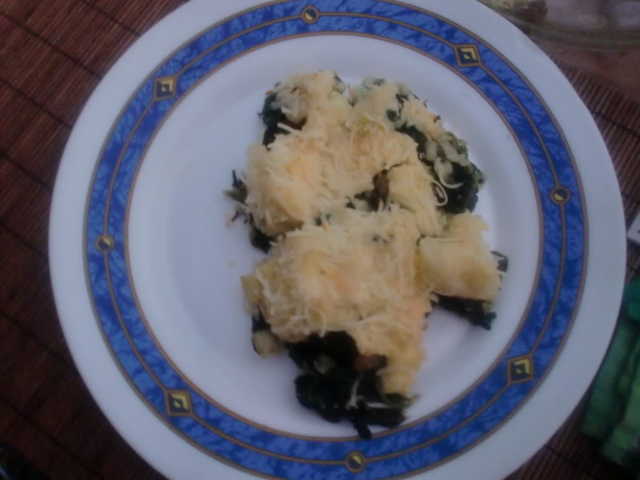 Pastel de patatas y espinacas con bacalao al horno