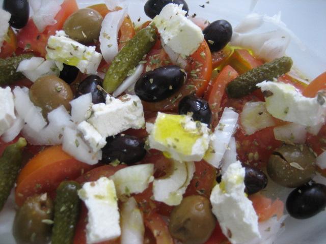 Ensalada de tomate, queso y aceitunas