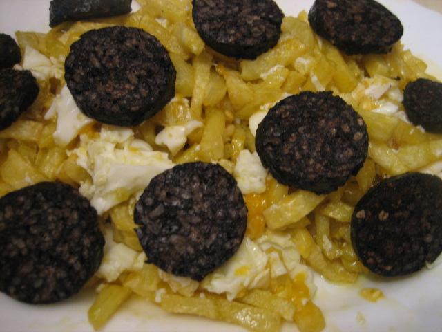 Huevos rotos con morcilla