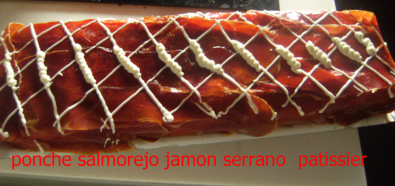 Empanada hojaldre pollo-nueces-bacon-bechamel Empanada hojaldre setas roquefort bechamel y nueces Empanada hojaldre york.queso-bechamel Pastel de lenguado, gambas y palitos de mar Ponche de salmón Ponche salmorejo jamón serrano