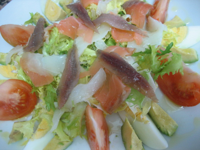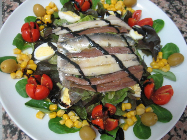 - Ensalada con anchoas y boquerones en vinagre