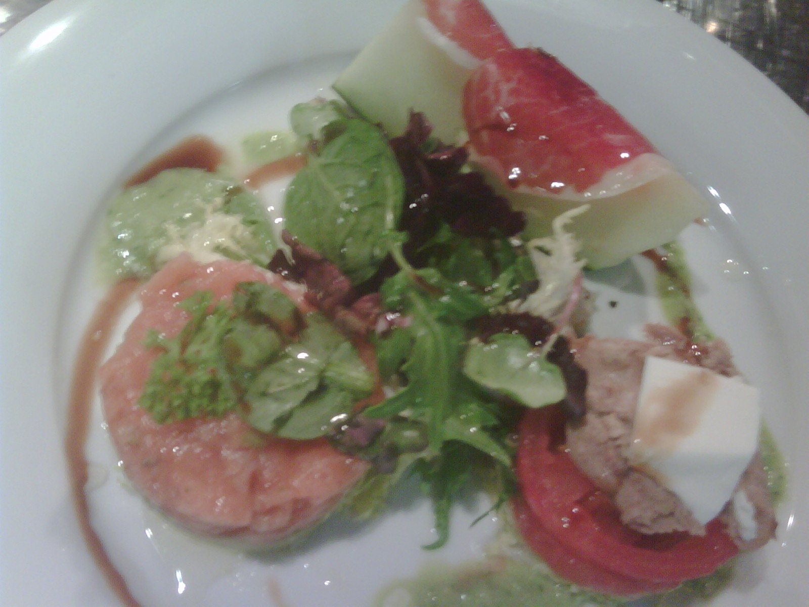 - Ensalada de melón con jamón, tartar de aguacate y tomate