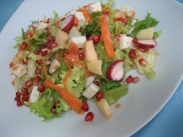 - Ensalada de escarola, granada, manzana y vinagreta de tomate
