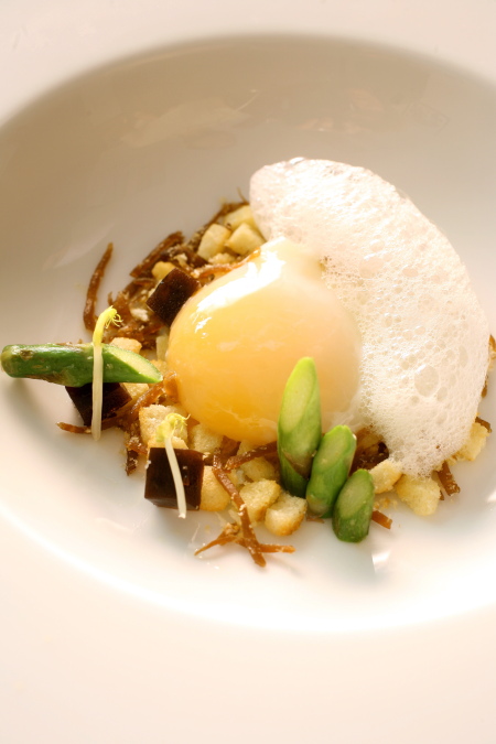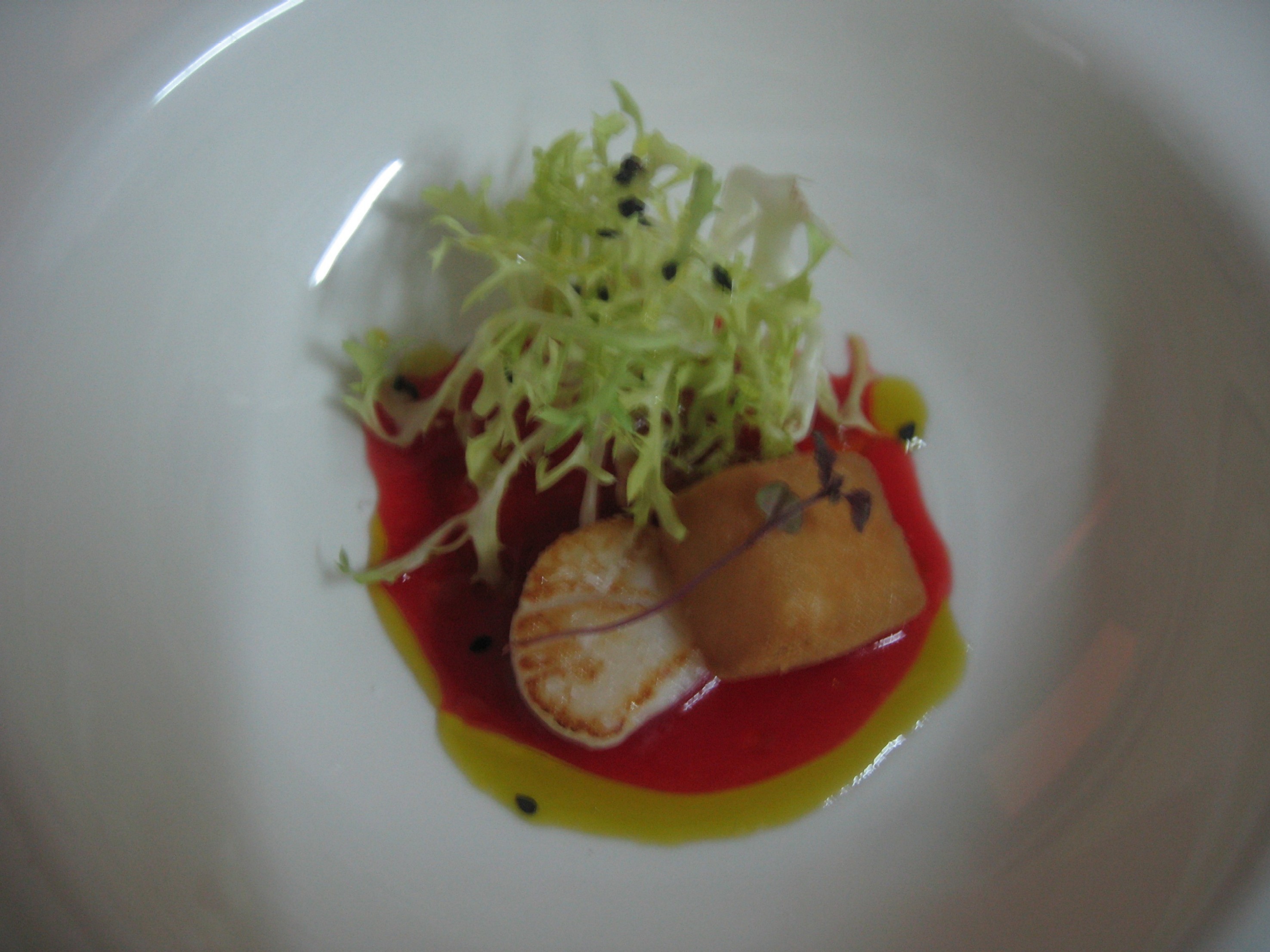 - Ensalada de Vieira en dos cocciones con tocino ibérico