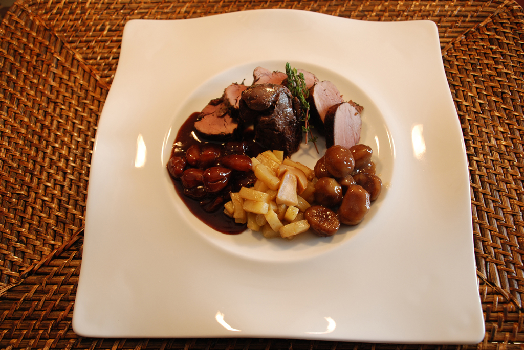 - Cochinillo a baja temperatura con manzana y pepino